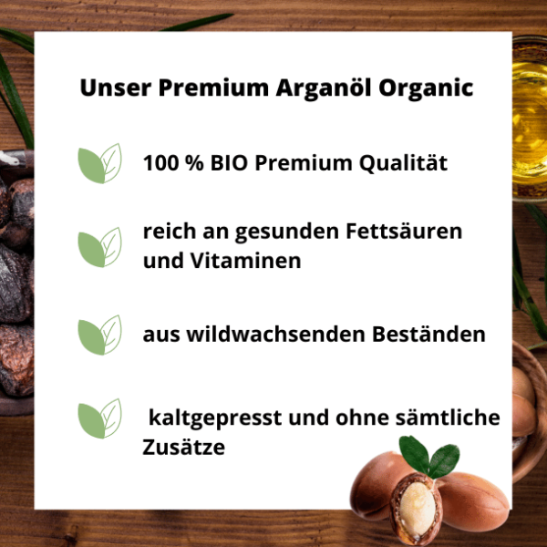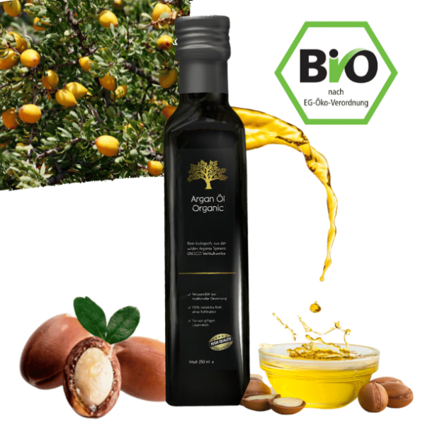 -100 % Bio Premium Qualität ( Herkunft- wilde Arganwälder im Süden von Marokko).